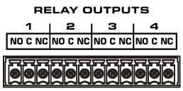 CX-Q, CXD-Q, DPA-Q – amplifier GPIO relay block: RELAY NO / COM /NC.